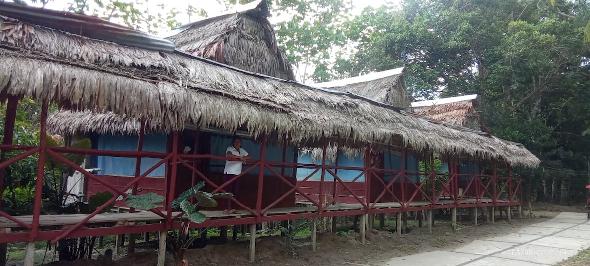 Maloka de dos pisos en la selva amazónica – Caserío Nueva Vida, Loreto Descansa y reconecta en una maloka artesanal ubicada en plena selva alta, a 50 km de Iquitos. Construida con techo tejido a mano con hojas de irapay, esta cabaña de dos pisos ofrece una experiencia auténtica, rodeada de naturaleza y tranquilidad. \ El espacio; La maloka mide 8 x 4 metros y cuenta con altillo y escalera externa. Tiene energía eléctrica y conexión a internet satelital de alta velocidad.