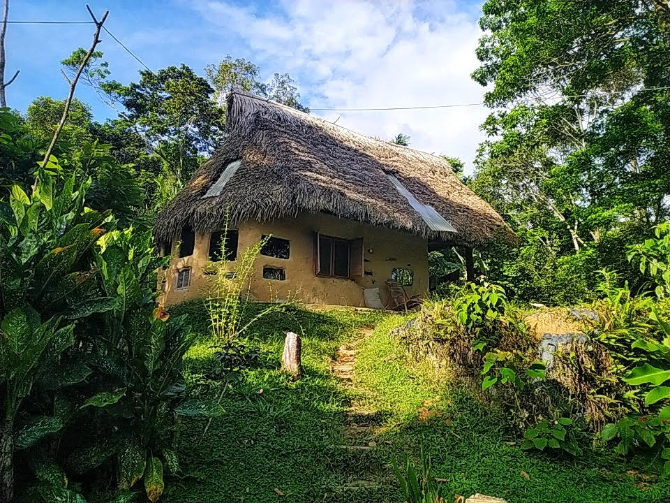 Beutiful house crafted entirely from natural materials on a sloopy hill overlooking small lagoon in the jungle..WIFI.. 220V ..spring matrace Short walking distance access to shower and bathroom .. shared chill area indoor .. gym .. Maloca with indoor fire pit .. terrace with 9000L swiming pool (natural bit of leaves and algae) Located out of town in jungle .. access to town walking or mototaxi 10 minuts You can see monkeys spiders and other jungle creatures around here in its natural habitat