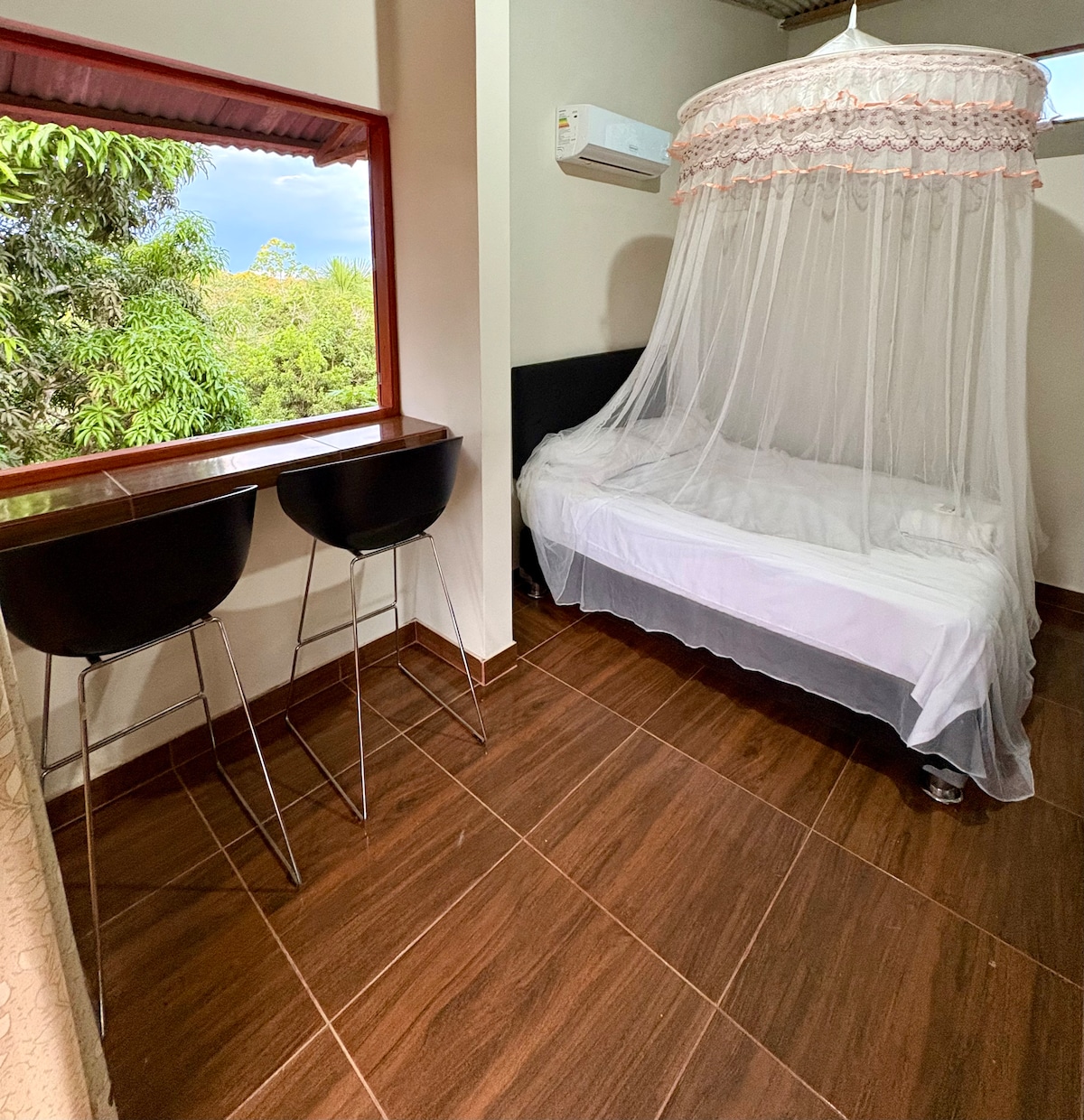 ✔️ Cama Queen cómoda, ideal para descansar tras un día de aventuras por cataratas y lagunas. ✔️ Espacio ventilado, con luz natural, baño privado y agua caliente. ✔️ Decoración cálida con esencia amazónica que inspira calma. ✔️ Ambiente sereno para parejas que valoran la limpieza, el silencio y el buen trato. ✔️ A pasos del centro de Tarapoto, en una zona segura y tranquila. 🌿 Elige una experiencia cercana, natural y auténtica, te hará sentir como en casa. 🌿No incluye Desayuno