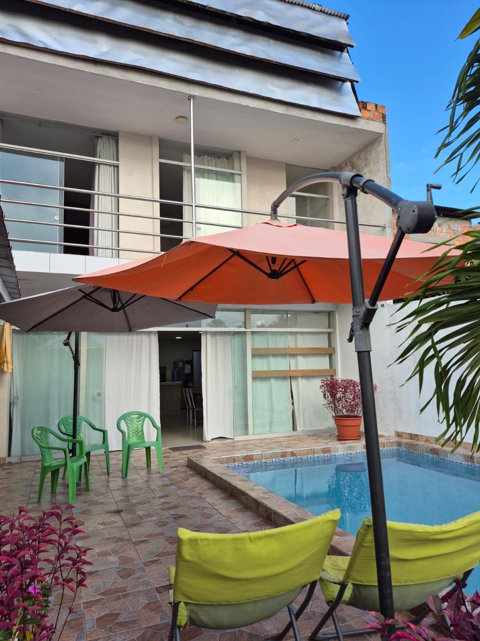 Disfruta de la estadía de una casa rustica con piscina manteniendo el confort de estar en el centro de la ciudad, la casa rustica mantiene un ambiente confortable, con una área de café, horno de barro, parrilla, tullupa, 2 hamacas, cochera para 2 vehículos, refrigerador, microondas, olla arrocera, licuadora, piscina y todo lo necesario que te hará sentir como en casa. y está a solo 5 minutos del centro de la ciudad de Tarapoto. Adicionalmente contamos con el servicio de Tours Privado.