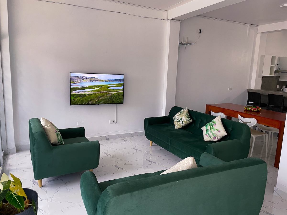 Este alojamiento elegante es ideal para viajes familiares o para grupo de amistades. Se encuentra a 5 min del aeropuerto y a 5 min del centro de Tarapoto. Accesible para lugares turísticos y ciudades cercanas como Lamas, Moyobamba Sauce etc. Se brinda recojo gratuito del aeropuerto. Se encuentra entre a la av. Alfonso Ugarte y la vía. Tiene wifi, aire acondicionado, cable y netflix. También se puede ofrecer por un adicional zona de parrillas, horno artesanal y un ambiente para celebraciones.
