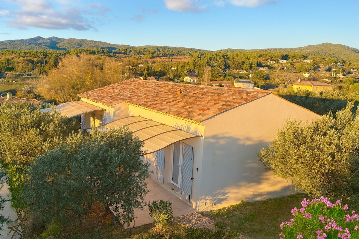 Montauroux, village perché du var entre mer (Cannes, St Raphael) et montagne (Préalpes d'Azur). L'appartement est complètement indépendant de notre maison avec une grande terrasse entièrement privative. Lac St Cassien accessible à pied. Pour votre confort nous mettons à disposition gratuitement des vélos, une piscine (non chauffée 12m x5m), un garage vélo moto, un tapis de course et barbecue. Les commerces à 1km. un jaccuzi extérieur 7 places (non utilisable l’hiver) et boulodrome.