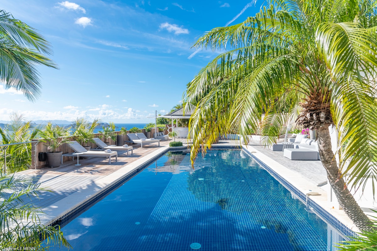 Nestled into the lush green hillside of Jean Bay, this classic St. Bart’s villa focuses on relaxing vibes and scenic ocean views. Whether you are lounging by the pool or sharing a meal on the upper terrace, you’ll have the breathtaking Caribbean Sea right there with you. When you’re ready to explore, Nikki and St. Jean beaches are nearby, as well as shopping, and the Capital, Gustavia. Copyright © Luxury Retreats. All rights reserved. BEDROOM & BATHROOM • Bedroom 1 - Primary: Queen size bed, Ensuite bathroom with 2 stand-alone rain showers, Dual vanity, Bidet, Television, Safe, Ceiling fan, Private balcony, Ocean view • Bedroom 2: Queen size bed, Ensuite bathroom with stand-alone rain shower, Television, Safe, Terrace • Bedroom 3: Queen size bed, Ensuite bathroom with stand-alone rain shower, Television, Safe, Terrace • Bedroom 4: 2 Twin size beds, Ensuite bathroom with stand-alone shower STAFF & SERVICES Extra Cost (advance notice may be required): • Activities and excursions • Washer/dryer services