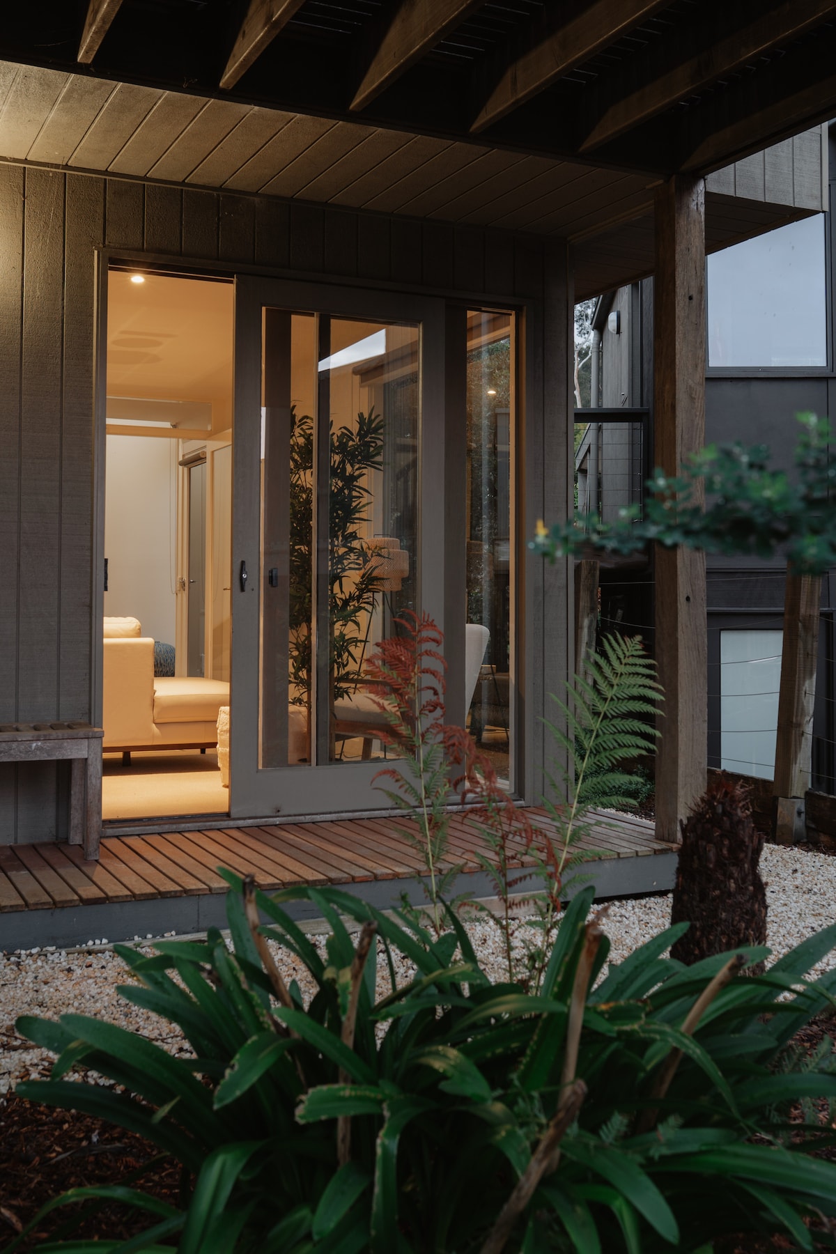 Blackwood is a one-bedroom cottage set on Gadubanud country, just a 5 minute drive from Lorne town. The cottage provides a place to unwind and enjoy all that the local area has to offer – beaches, bush walks, waterfalls, eateries/bars and cellar doors to name a few. Blackwood offers all of this at its doorstep while providing a sanctuary for rest and relaxation in a beautiful bush setting.