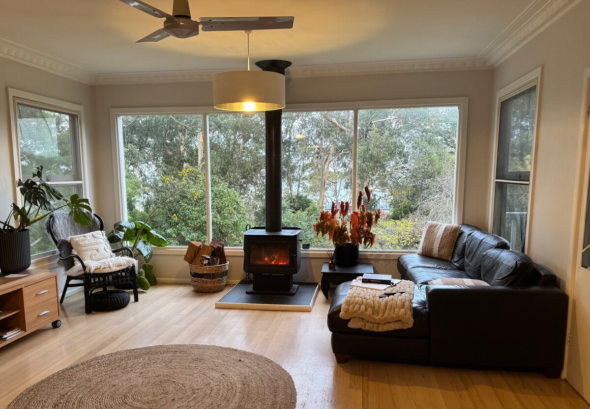 Our place is close to the beach, pub and shop. You’ll love our house because of the exquisite views, cosy wood fire, FOXTEL + Footy (High Definition), BBQ, free fast (90meg/sec) NBN WiFi, full reverse cycle cooling and heating and abundant wild life. Our place is good for couples and families (with kids). Please note that LINEN IS INCLUDED at no extra cost.