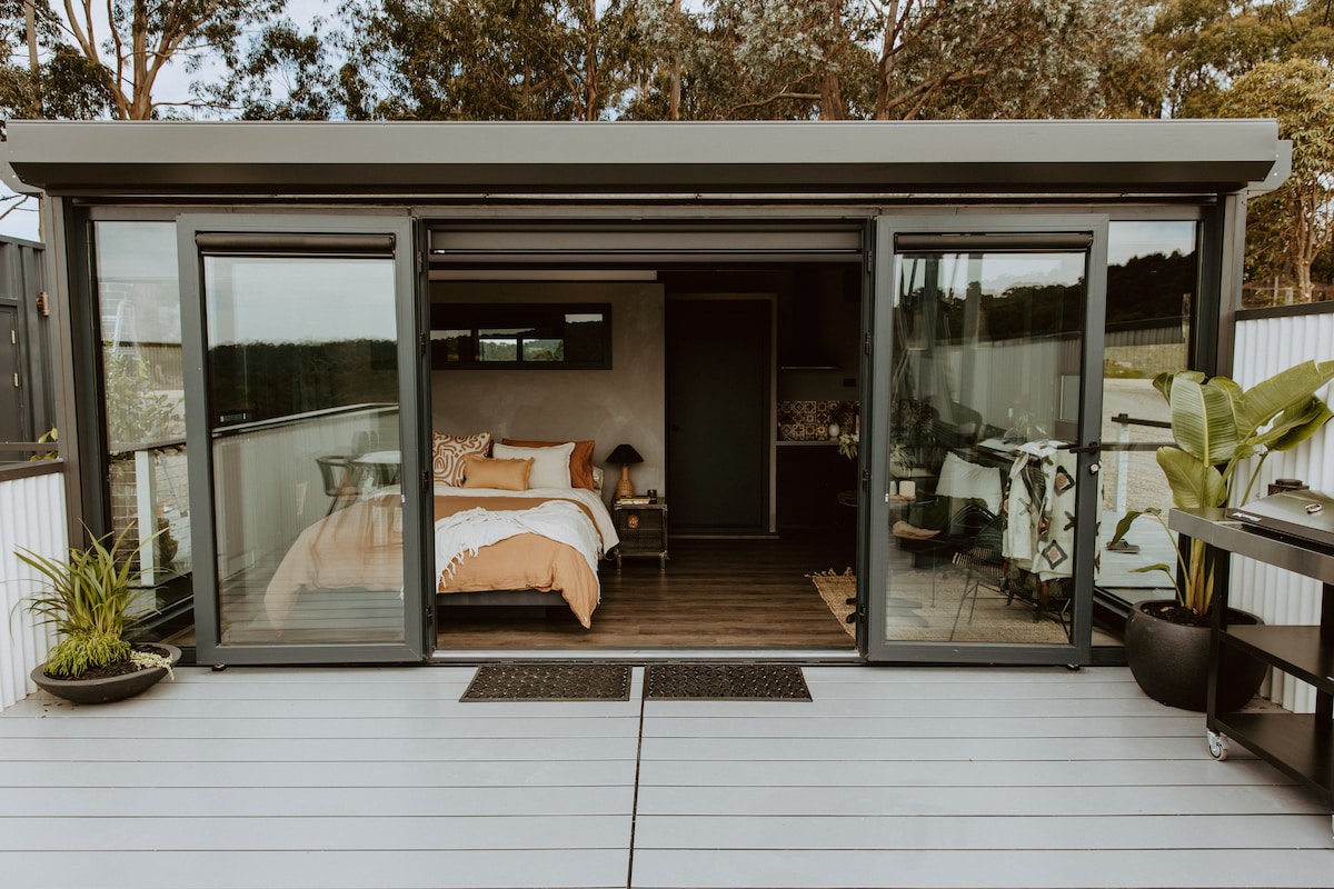 Set within the hinterland of Lorne, these uniquely created container apartments are filled with all the necessities and luxuries you may need. With a fully equipped kitchenette these spaces cater for the ultimate indulgence. The generous decks allow you to feel as if you are at one with nature, admiring the timeless views of the Otways and Surf Coast. These spaces have multiple places to relax, unwind and reset. If you have Insta, you can follow our guests and stories on uncontained.aus