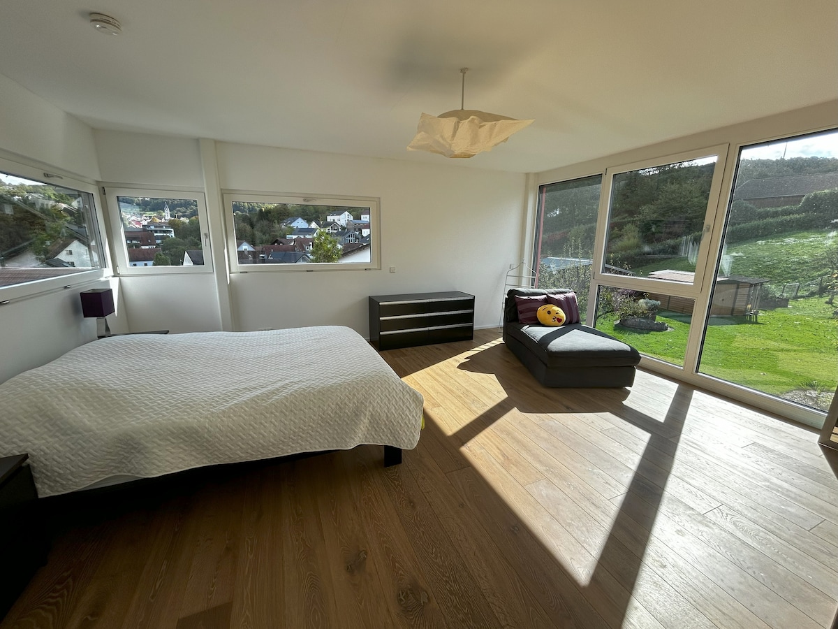 Feel at home in our spacious, newly renovated apartment, offering modern comfort in a prime location. Just a short walk from the train station and tram, with a bus stop right at the door, everything is within easy reach. Enjoy stunning views of the Basel skyline and surrounding mountains, with beautiful natural light from sunrise to sunset. Perfect for families or groups, with free private parking. The ideal spot to relax, whether for business or leisure!