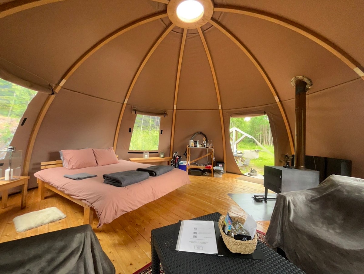 圆顶帐篷中的浪漫豪华露营体验 + 早餐