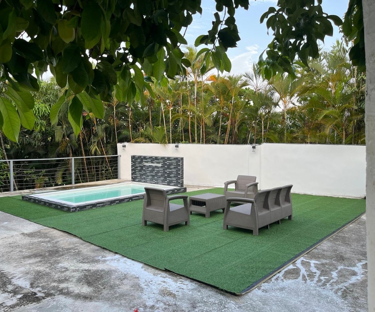 Diviértete con tu familia o amigos en esta espaciosa casa para 7 personas! Ven y disfruta de una cómoda estadía y de las amenidades que te ofrecemos como nuestro Jacuzzi para hasta 7 personas, un amplio patio con BBQ de carbón listo para usarse y una decoración 100% para Instagram. Estamos cerca de las cadenas de supermercados mas grandes del país y a menos de 15 minutos del centro de la ciudad. 5 mins de la embajada estadounidense 25 mins de la Zona Colonial 50 mins del Aeropuerto SDQ