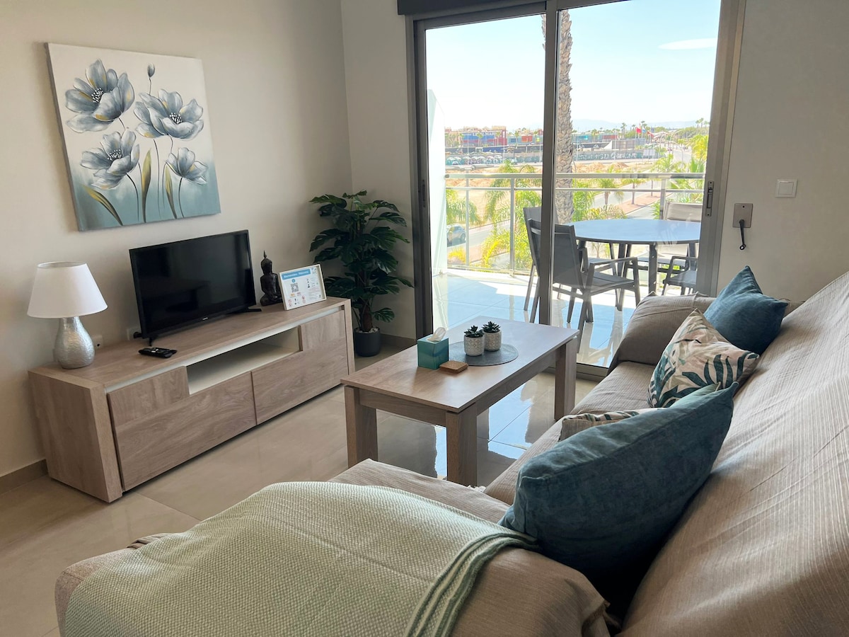 Sol y Playa Los Alcázares, 550 meters from the beach. It features a terrace, two bedrooms, one with two beds and the other with a double bed, a living room with a sofa bed, a fully equipped kitchen, and a bathroom. Wi-Fi, a television, air conditioning, towels and bed linen are included, a washing machine, and a hairdryer. A smart lock is included. Close to the yacht club, restaurants, and entertainment venues. 28 km La Manga Club, Murcia International Airport is 32 km