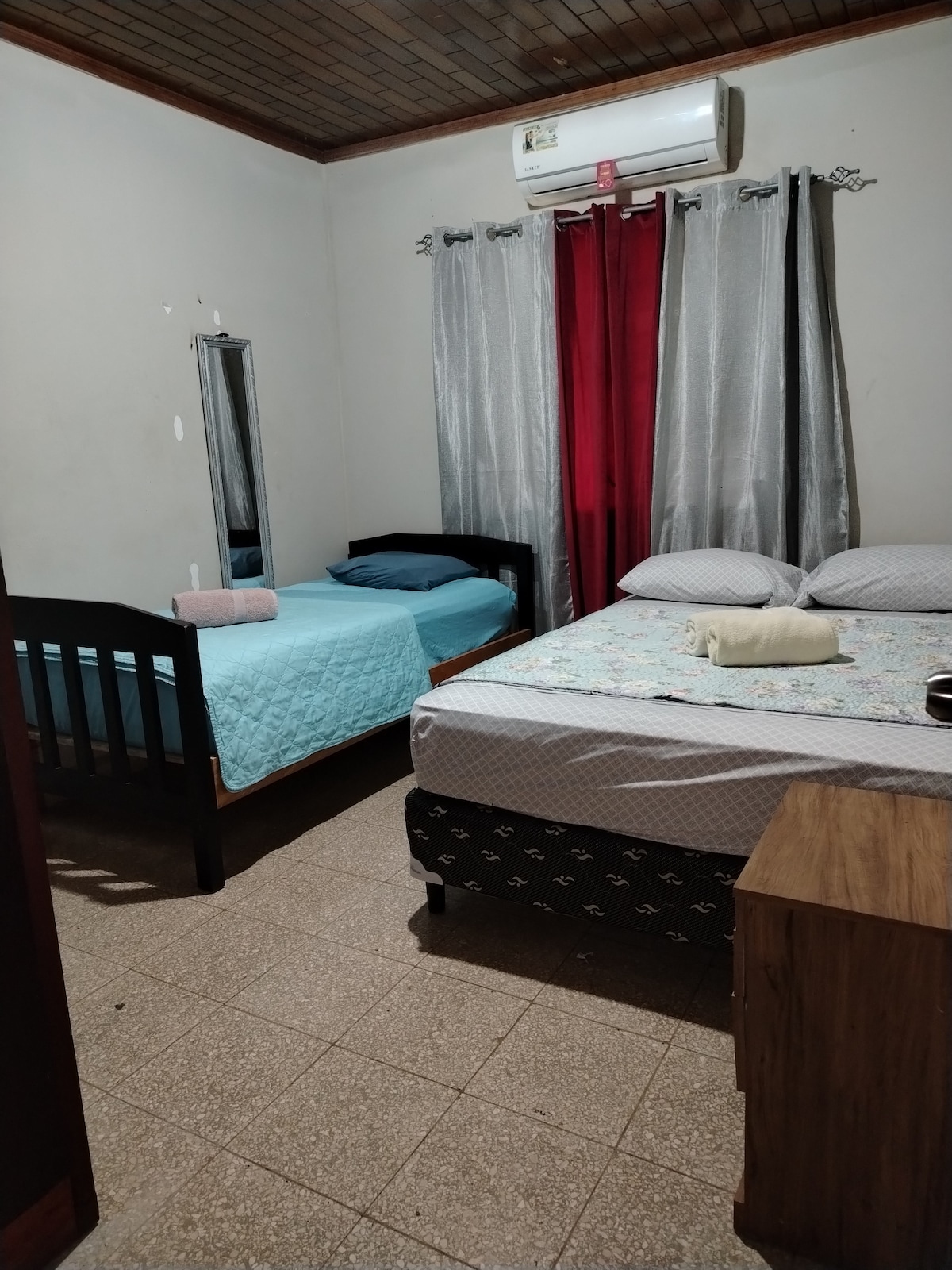 Casa en altos de boquete, antes de la entrada de caldera, Residencial johnny Wooland, a 1.5 km del hotel hacienda los molinos. Tiene 2 cuartos, y cada cuatro con una cama doble, aire acondicionado, televisión y ventilador de pared, un baño, A 3 minutos en carro esta un minisupuer, y para tomar autobus deben caminar 3 minutos para ir a bajo boquete, o la terminal de David, también tenemos una casita en David de alquiler en airbnb. Mil disculpas pero NO Aceptamos Animales de servicios ni Mascotas.