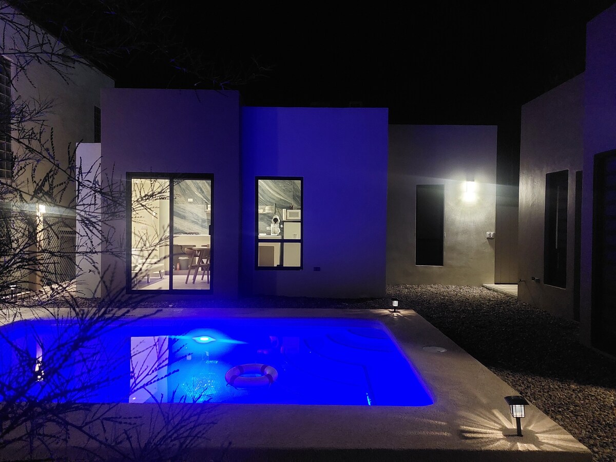 Brand new house located in a private and gated community. Amazing views of the Cerro del Tetakawi and Marina. The house has a big patio for kids with amenities such volley/soccer court . You can enjoy the pool all year long and enjoy family bbq on our grill. Smart TV’s with Sky and Netflix, a bar to prepare your favorite mixology drinks or a glass of wine. A big & open kitchen located upstairs.The beach is within walking distance from the house (100 mt). Pets welcome w/extra fee $60 per stay