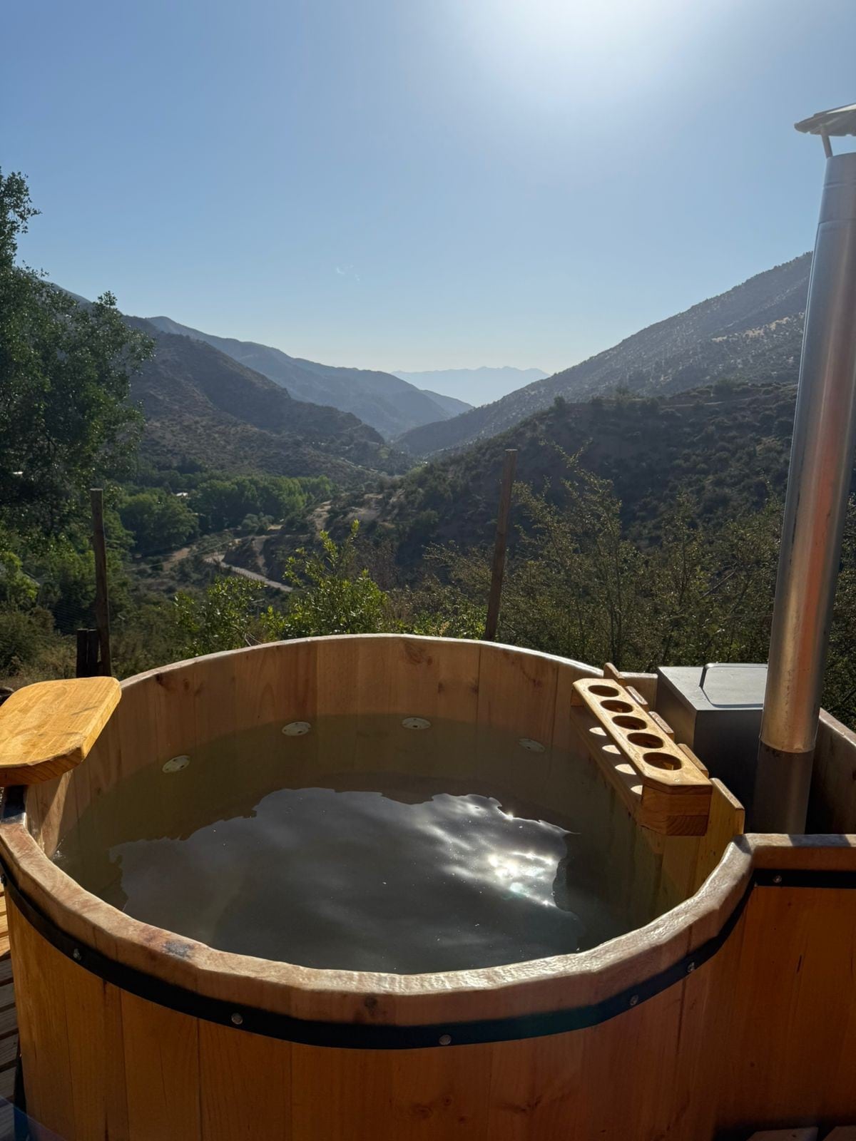 Un Refugio único privado, con la mejor vista a la Cordillera de Los Andes. Es un lugar exclusivo, sin casas cercanas, no es un camping. Estás cerca del Casino Enjoy (20 minutos), Centro de Sky Portillo (60 minutos) y Santiago ( 1 hora). El lugar cuenta con Hot Tub y piscina para nadar por separado , gran quincho con una maravillosa vista. Primer piso con salida directo a la Tinaja, para personas con movilidad reducida , conecta con el silencio y la tierra, Sustentable... Full equipada.
