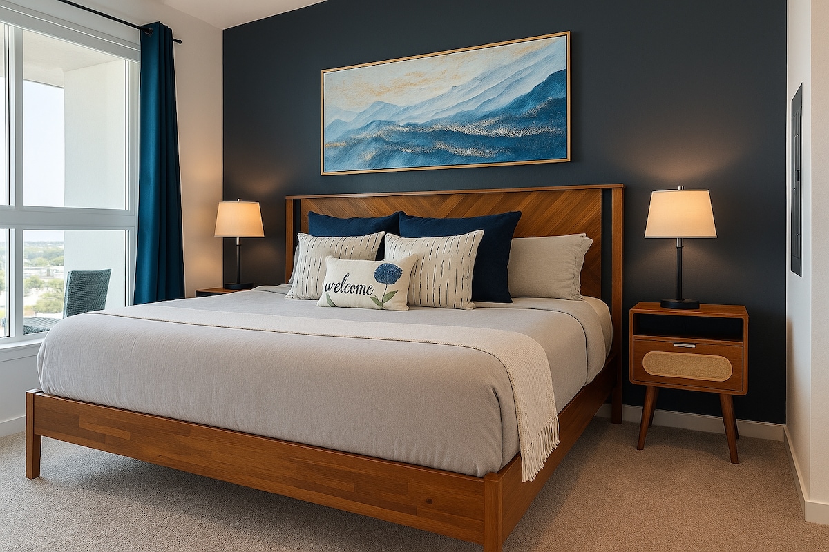 Beautiful 1 Bedroom condo on historical Broadway Blvd. Right next to Ace Hotel, this building used to be the largest costume shop in the world. Actor's like Charlie Chaplin used to come and pick up their attire here. 20ft+ceilings & views of the sunsets and city lights have you feeling the vibes during the evening hours. Includes TV and fast WIFI.