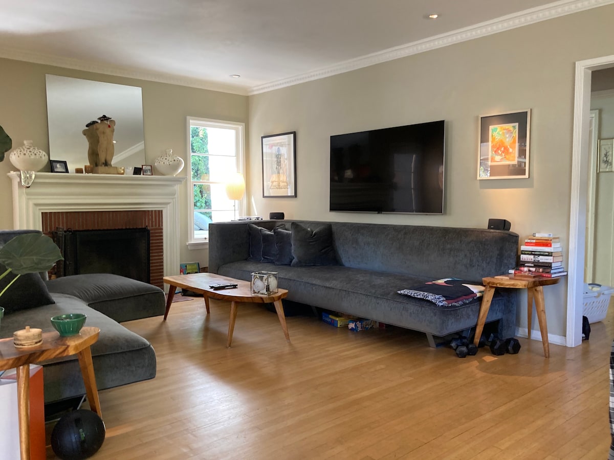 Midcentury modern 2bed/2bath stilt home with spectacular views above Sunset Strip (2 blocks up from Hollywood + Fairfax). Only blocks from the action, but very private and quiet. Recent renovations from roof to foundation, heat/AC system, 1 Giga/sec wifi, wired in + out with 11 speakers, movie projector + two 4k TVs (free Netflix, HBOMax and AppleTV+), 2-car parking with level 2 electric charger. Please note: No social gatherings or late, loud nights. Interior = 1015 sq ft. Deck = 300 sq ft.