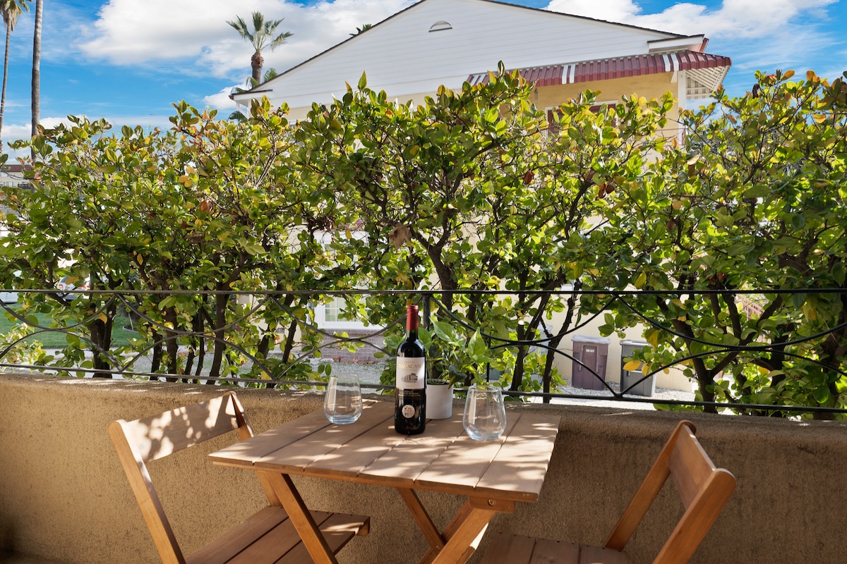 Upstairs two bedroom, one bathroom cottage w/ private patio and BBQ. Located just 1.5 blocks from the sand and and steps from Main Street dining and shopping. Completely remodeled and fully equipped kitchen, with microwave, coffee maker, stove, dishwasher and refrigerator. Sleeps 4, one queen size bed and two twin beds. Includes parking in a private single car garage (no automatic entry). The patio overlooks a court yard with green space and small pond. 2025-26 Permit #STR6