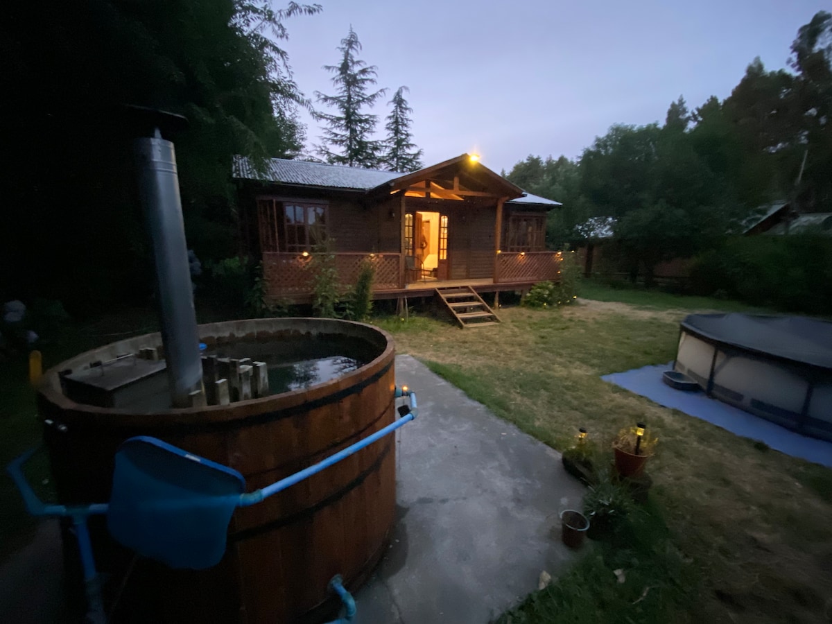 Relájate en esta escapada única y tranquila, donde podrás disfrutar de un lugar rodeado de naturaleza a menos de 10 minutos de Los Ángeles. Podrás disfrutar de un entorno rodeado de árboles nativos, una cabaña a orilla del Río Rarinco con terraza, tinaja, fogones, una cocina equipada para amantes de la buena mesa. En el lugar podrás practicar pesca deportiva, realizar fogatas, caminatas, disfrutar de un buen asado en la terraza o disfrutar de un baño de agua caliente en nuestra tinaja.