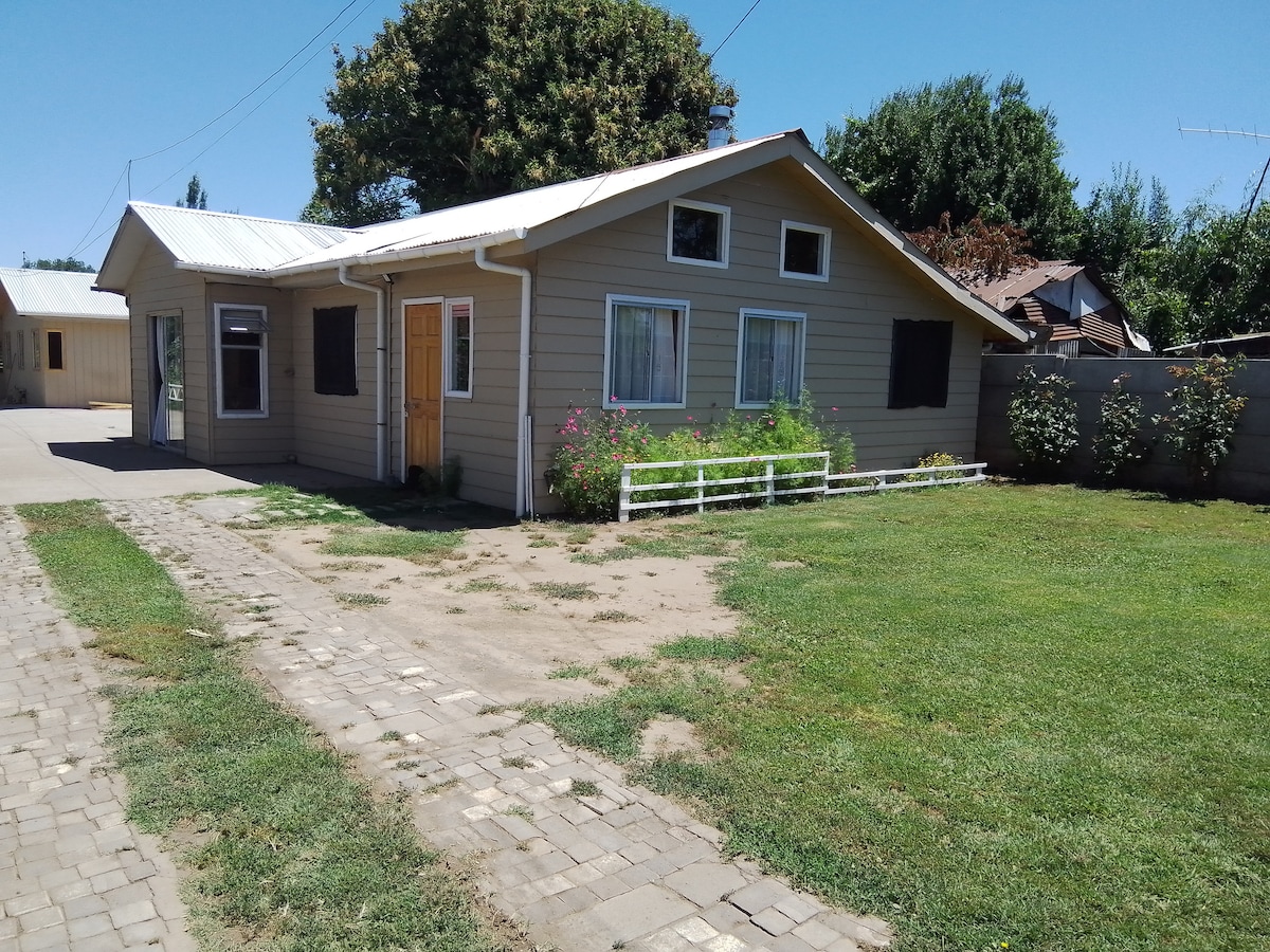 Les ofrezco un espacio de 2500 mtr2 de áreas verdes, espacio para barbacoa y un riachuelo apto para refrescarse. El espacio es solo para usted, no se comparte con otros huéspedes o con más cabañas. La casa es de 50mtr2, equipada con todo lo necesario para una estadía comoda. Se ubica a 300 mtrs de autopista 5 sur, camino a la Aguada con excelente acceso pavimentado. Las cataratas del los Saltos del Laja se encuentran a 2 minutos.