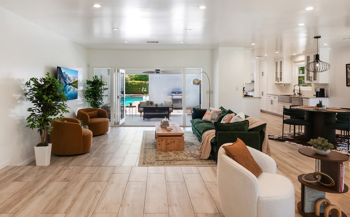 Wake up to a breathtaking view of the sunrise at this newly renovated 5BDR luxurious home, located in the most peaceful area in West Hills. Comes with a pool, 6bd (1 king, 1 queen) ping pong table, theater/game room & balcony access for 4 rooms. Next to the 118 and 101 freeways makes it a less than 20 minutes drive to most entertainment places in Los Angeles like Hollywood, Malibu, Santa Monica, Universal Studios, a 5 min drive to essential markets & 1 of southern Cali’s biggest shopping malls!