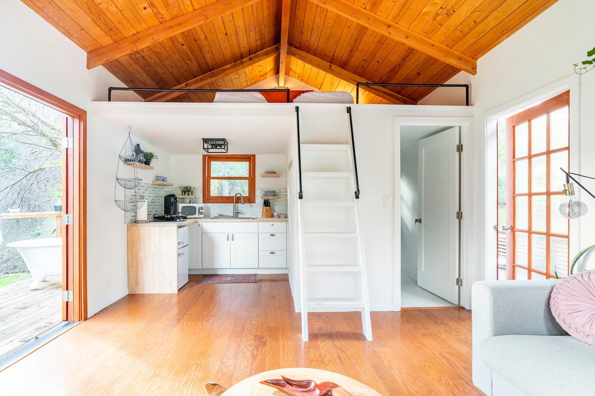 Private, bright tiny home with a loft nestled into the canyon hillside of Old Topanga. Independent, fully furnished with everything one to two people could need to have a relaxing retreat and enjoy the peaceful canyon views, nearby hiking trails, and escape the business of LA. You will have full access to the entire cabin, including front wrap-around porch, back patio, and yard. Full indoor bath as well as an outdoor clawfoot bathtub allows you to enjoy a relaxing soak with a view.