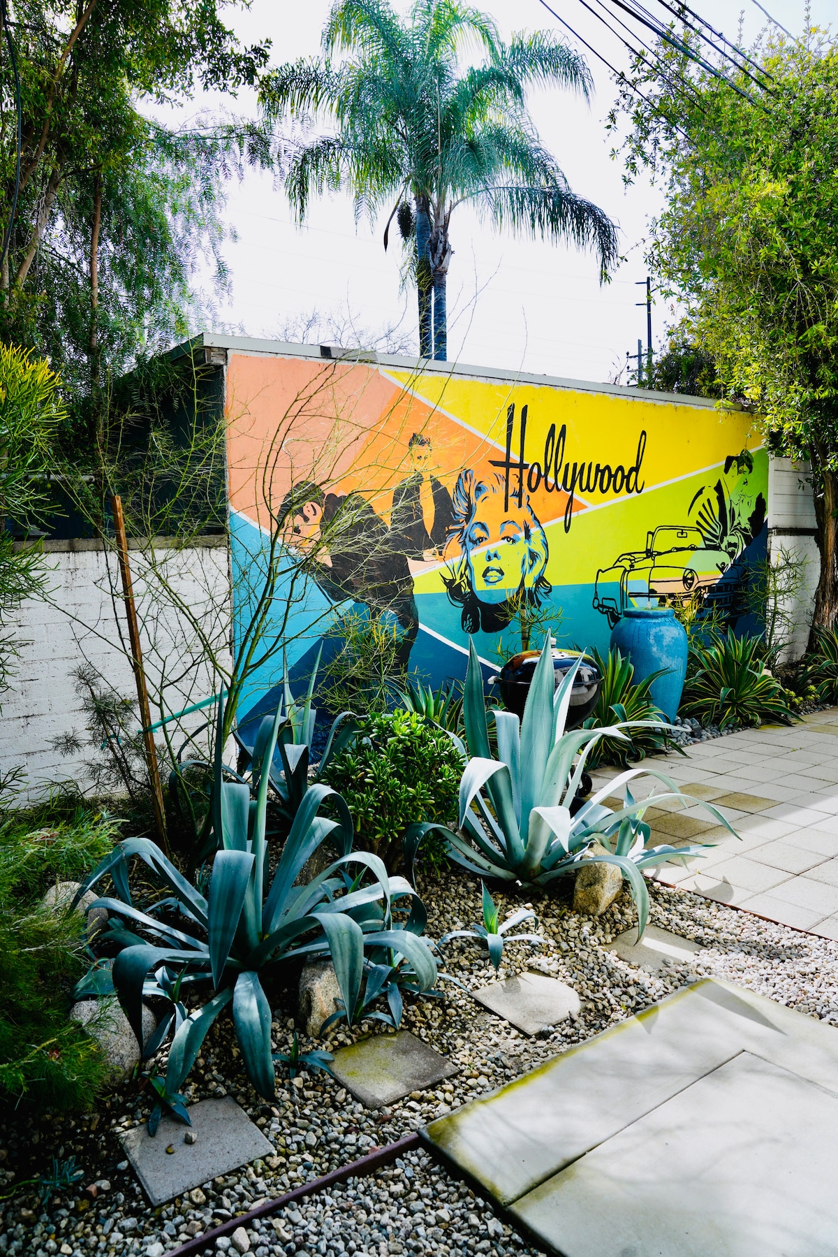 Sip refreshing beverages in the lush garden under a giant magnolia tree. Although this mid-century house has undergone a stylish renovation, Spanish influence remains in the archways and stunning living room window. The house is one block from the center of Silver Lake, called one of the hippest neighborhoods in the US. The house is perfect for entertaining friends and family and you are sure to create magical memories of your visit to LA.