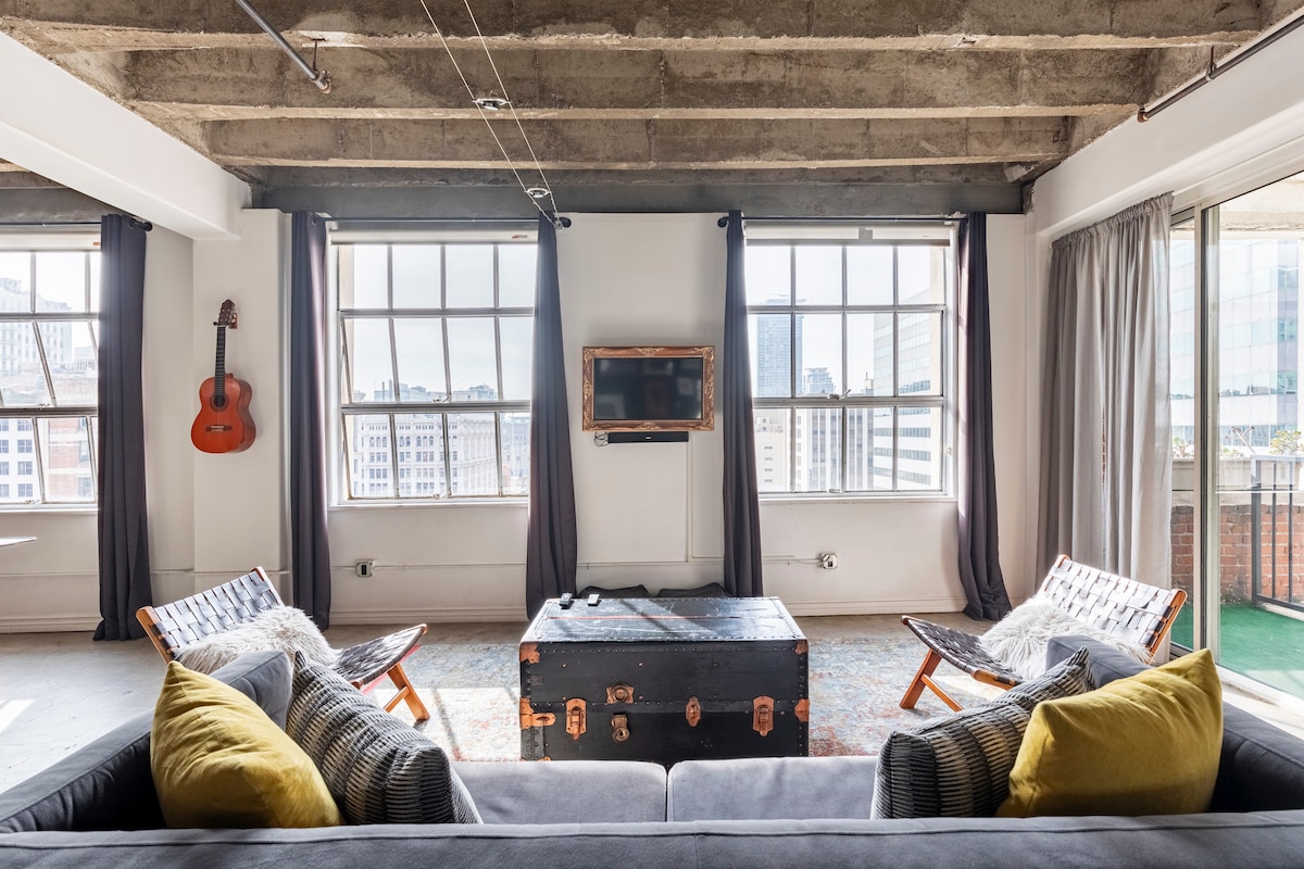 Read House Rules and neighborhood descriptions BEFORE booking. By booking you accept all house rules! Come enjoy the beautiful views & relax in this 10th floor 1920s Beaux-Arts loft located in the Historic Core. The industrial past of this renovated space is still present in its high concrete ceilings and floors. Per building security rules, guest must provide government ID to host and/or guard once booked.