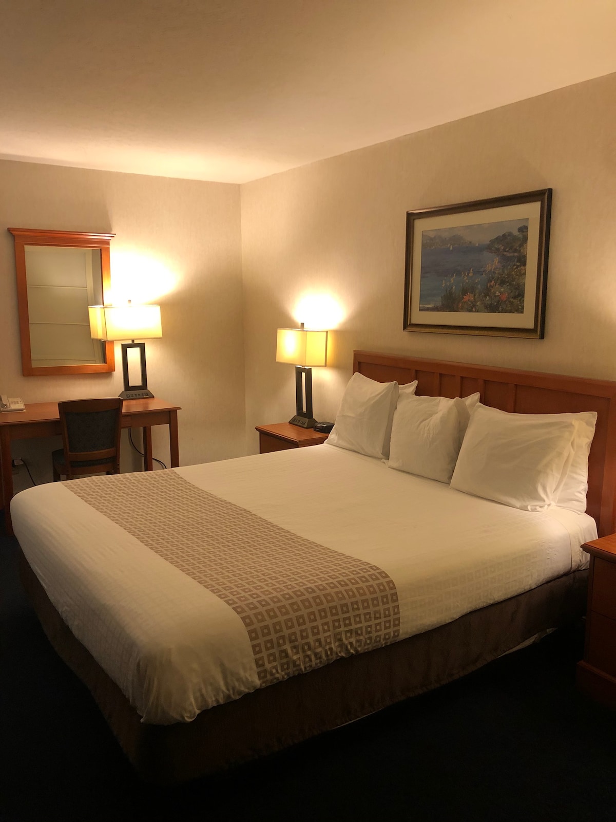 We offer newly renovated, modern rooms designed with the perfect blend of comfort and convenience at our boutique motel. This stylish place is central to must-see destinations like the SoFi Stadium, Disneyland and Universal Studios. Free: Wi-Fi, Cable TV, Parking, Micro Fridge, Microwave, Coffee Machine, All-Inclusive Utilities, Friendly and Professional Front Desk Staff, 24/7 Security. This room has a king size bed that comfortably sleeps 2 adults and 1 child. No deposit. 24/7 check in.