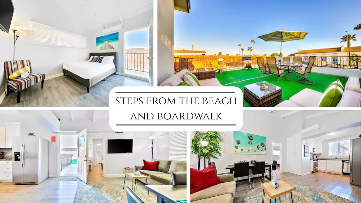 Have fun with the whole family at this stylish vacation home located just steps from the sand and boardwalk in the heart of the beautiful Balboa peninsula. This gorgeous beach house will get you in vacation mode the minute you walk through the front door. You will find endless fun all around with the Balboa Ferry, Fun Zone, Balboa Pier, bike/beach toy rentals and many bars and restaurants located within a 2-3 blocks of the home.