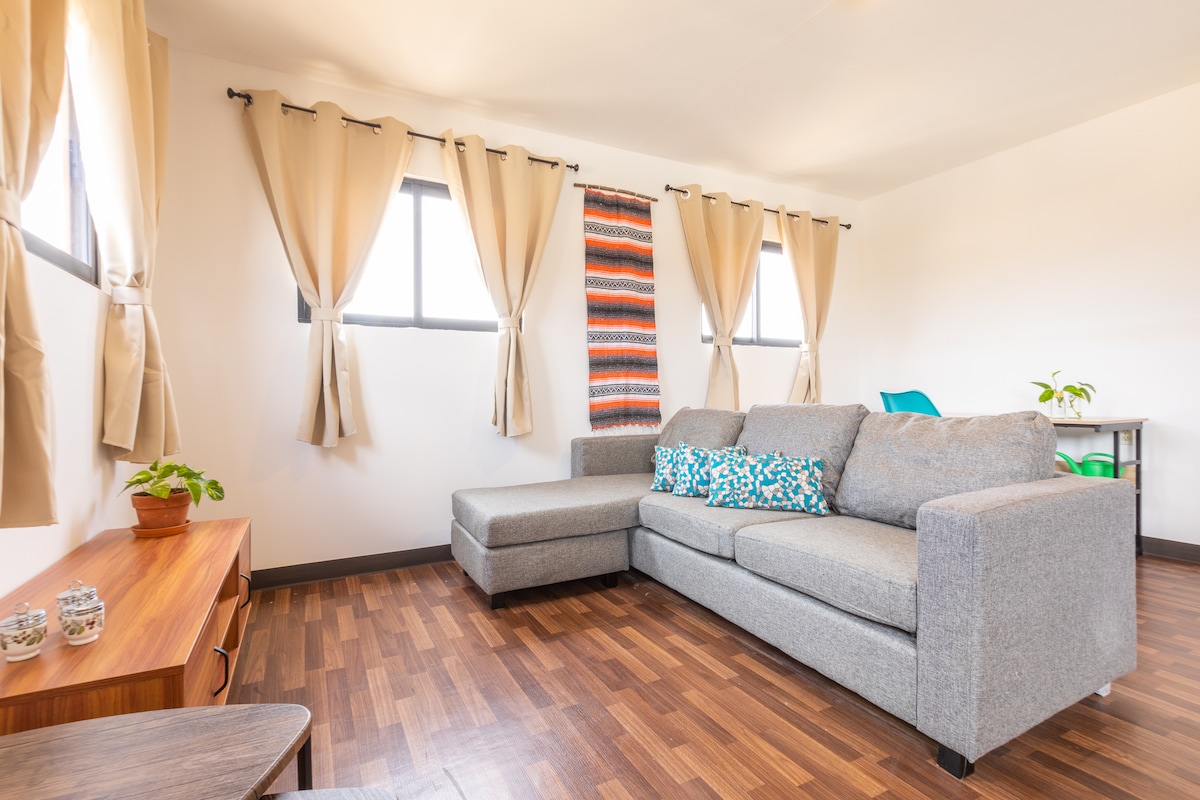 Studio Ensueño is part of the community of Casa Hygge, intentionally designed with the environment and needs of the guest in mind. Found at the end of a private road, enjoy having the privacy of a beautifully designed casita along with the comfort of amenities like common spaces, a pool, gym, security, and more, all surrounded by luscious, aromatic farming fields. Studio Ensueño provides an ideal location for every kind of traveler.