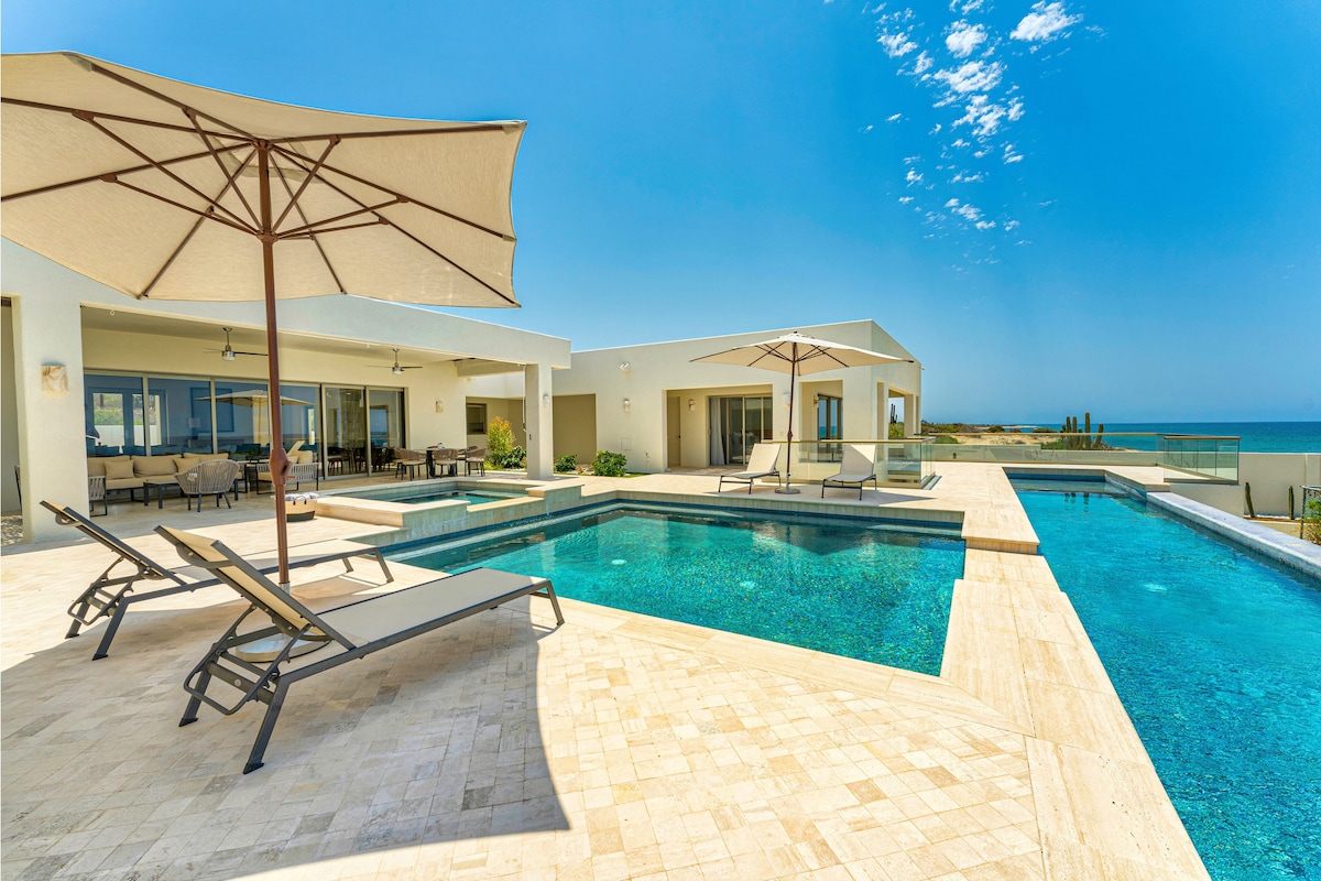 Gather your favorite people at Casa Alma del Cabo! This brand-new, fully air-conditioned luxury villa offers ocean & mountain views across over 400 m² (4,300 ft²). With 6 bedrooms for up to 14 guests and just a 5-min walk to one of East Cape’s most beautiful beaches, enjoy the pool, heated jacuzzi, rooftop firepit, hammocks, shaded & sunny terraces, full kitchen, BBQ, paddleboards, fast Wi-Fi, and plenty of space to relax together.