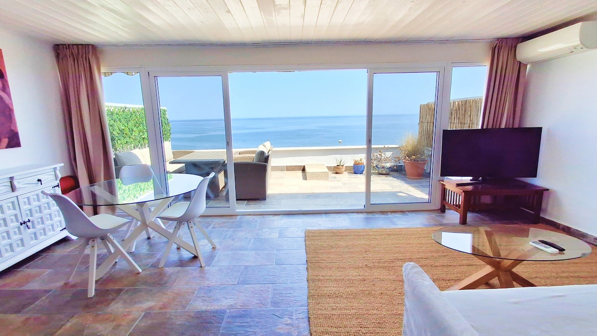 "YourHolidaysinSpain" Welcome to my beautiful beachfront apartment completely renovated in January 2024 with enviable location and 44m2 of sunny terrace facing south and west, with open views to the beach, sea, mountains, pool, and surroundings. Do not miss the opportunity to book this property that will make your vacation unforgettable for you and your family. We have more properties: Find them at "YourHolidaysinSpain"