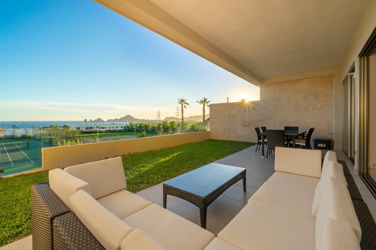 The beauty of nature, the comfort of a hotel and affordable price; green areas, pool, tennis courts, 24 hr surveillance, excellent location (10km downtown Cabo San Lucas, 7km marina, 3kms Cabo Bello beach, 400mts super market, close to golf course). Condo with wifi 20 megas, air conditioning, oudoor pool, tennis courts, 2 bedrooms, living room, TV, fully equipped kitchen, 2 full bathrooms, fully equiped laundry with washing machine and dryer, terrace with garden view and assigned parking spot.