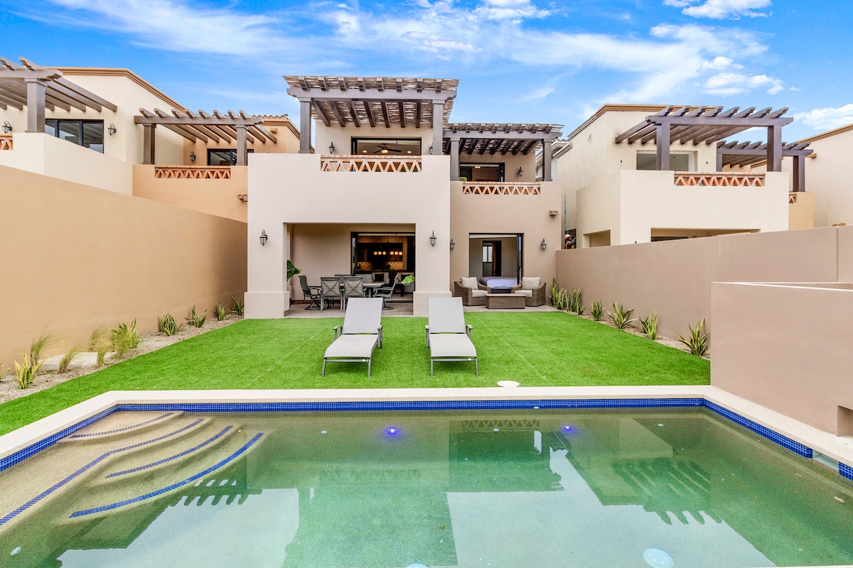 Welcome to our charming California-style duplex apartment, just a 5-minute walk to the Cabo Bello private beach and a 10-minute drive to downtown. This 2-bedroom, 1.5 bath retreat is perfect for families or long-term renters. Relax in the small, private pool and the convenience of being only 3 minutes from Costco. For larger groups, we also offer the other side apartment of the duplex, hosting up to 4 additional guests. Ideal for relaxing beach vacations or extended stays with a private beach.