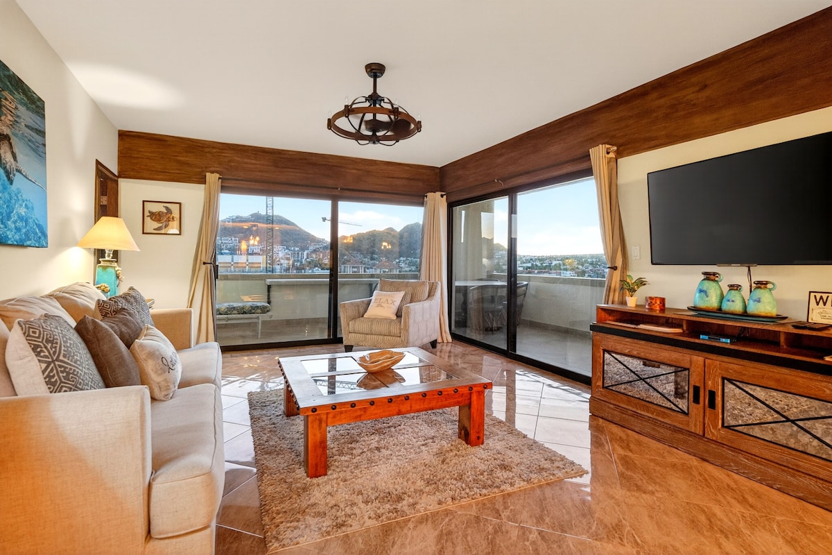 Welcome to La Buena Vida, your peaceful Ventanas de Cortez Phase 1 retreat. Enjoy stunning sunrises and sunsets and panoramic views of Medano Beach and Land's End. Perfect for families, this serene getaway is just 10 minutes from downtown Cabo, the Marina, and the beach. Unwind in the heated rooftop pool or explore the vibrant Cabo San Lucas area. La Buena Vida offers the best of relaxation and adventure for an unforgettable stay.