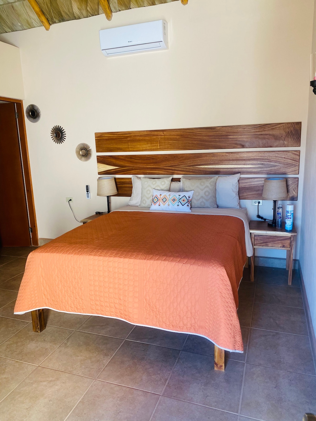 El Tezal, Cabo San Lucas. This unique cabin-style studio blends rustic charm with modern comfort. Designed for couples or solo travelers, it offers an unforgettable experience featuring an outdoor bathroom under the stars, a cozy fireplace, and peaceful desert surroundings — all just minutes from downtown Cabo and the beach. Whether you’re here for a romantic getaway, a surf trip, or a peaceful work-from-anywhere stay, this space offers privacy, comfort, and character.