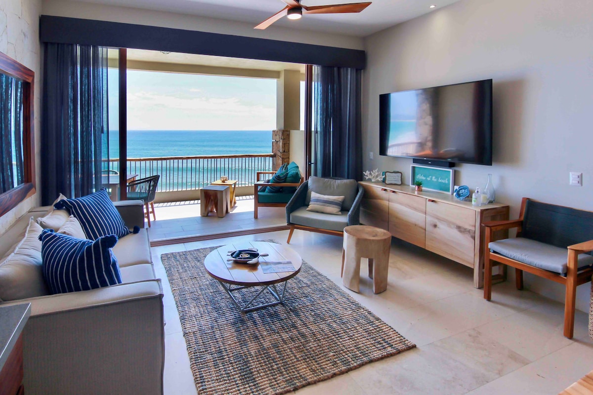 Welcome to Casa de Feliz at Terrasol Resort, a tranquil oasis where desert meets the sea and relaxation is guaranteed. Casa de Feliz is a large ground floor studio condo. Perfectly situated on the white sandy beach facing the Pacific Ocean, Terrasol offers the best of both worlds: a peaceful and relaxing beachfront resort yet a short walk to all the action that Cabo has to offer.