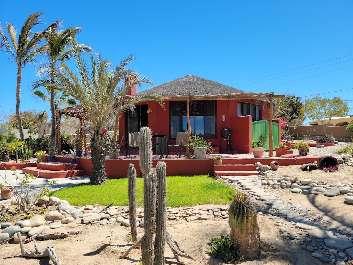 Think a short getaway or month(s) to rest/remote work or explore Baja. Open layout allows comfy lifestyle for just a couple yet can suit a gathering up to 10. -- Includes 3 bdrms + tiny bunk bdrm upstairs. + 5th separate studio bdrm on ground level with separate entrance. -- Well equipped kitchen, BBQ. --Large, level & very private patio & pool area. No shared spaces. --Ideal location. Beach, eateries, shops are all within easy walking 5 - 10 mins. Parking for 1 car only. Come and enjoy!