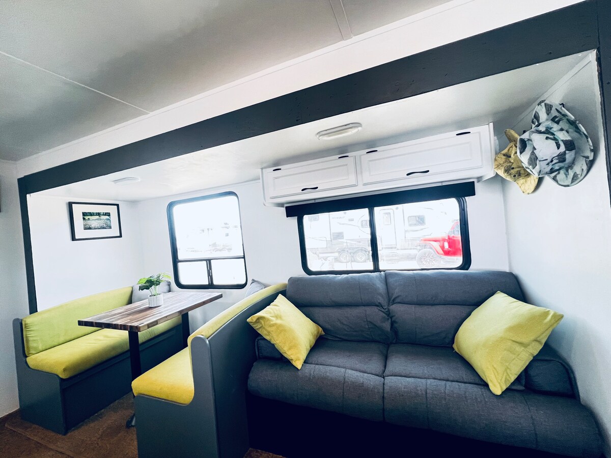 舒适的波西米亚风格露营车|私人露台|艺术中心