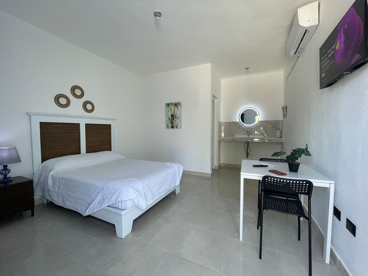 Habitación al lado de la PLAYA está ubicado en la zona de El Cortecito, antiguo pueblo de pescadores, Las playas son de arena blanca y fina de color azul verdoso. Esta en el corazón de Bávaro a unos minutos caminando de la zona principal de bares y restaurantes. Habitación y cama Full y Twin, wifi, Tv, Aire acondicionado, baño con agua caliente. Tiene 2 niveles y si, al lado de la playa misma.