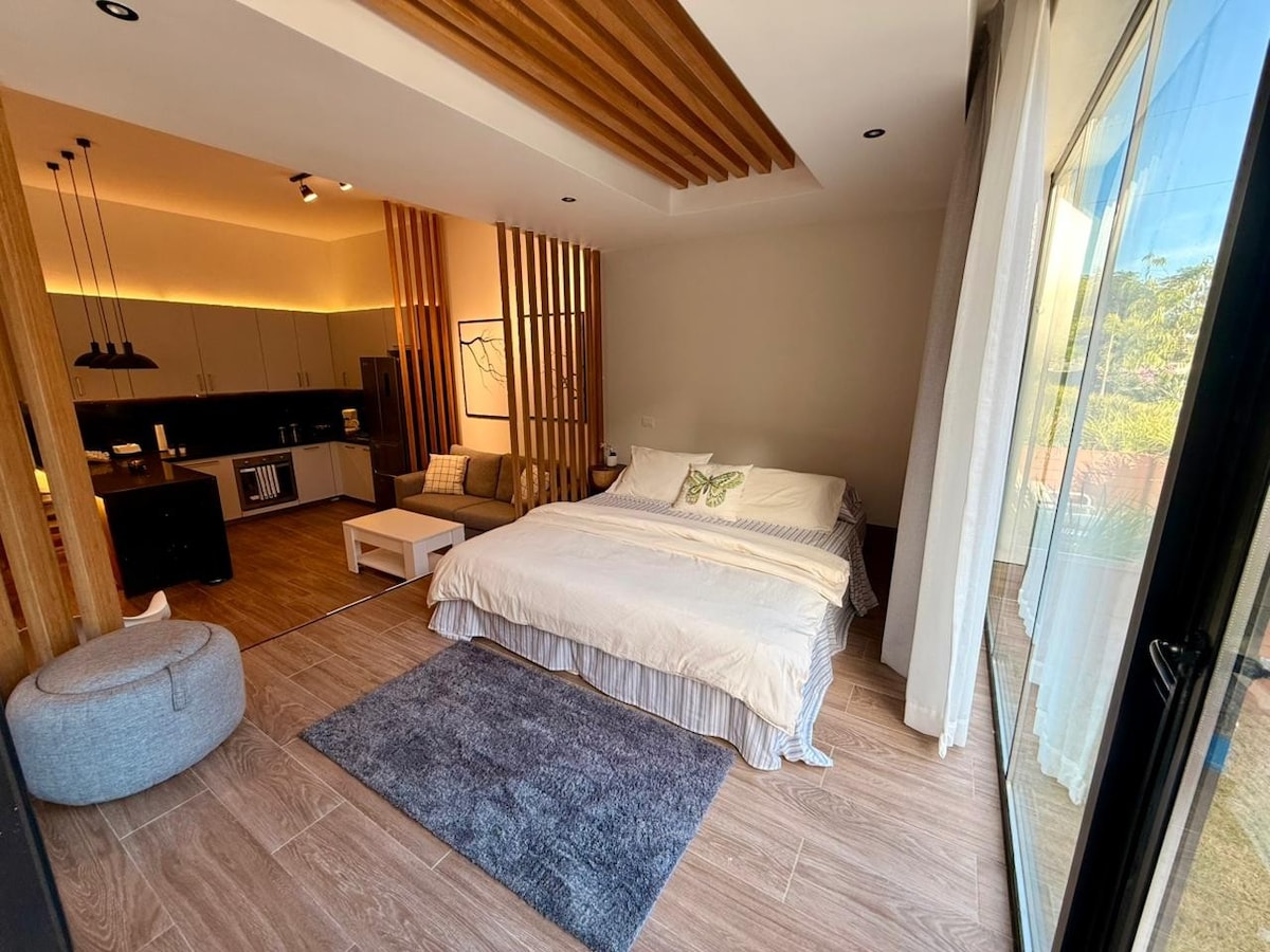 Modern adults-only (18+) loft in Faranda Single 1, just steps from Downtown Punta Cana and 7 minutes from the beach. Features a king bed, sofa bed, central A/C, equipped kitchen, spacious bathroom, and a terrace with pool view. The complex offers a 24/7 pool, gym, bar-restaurant, and rooftop. Perfect for couples seeking comfort and a great location.