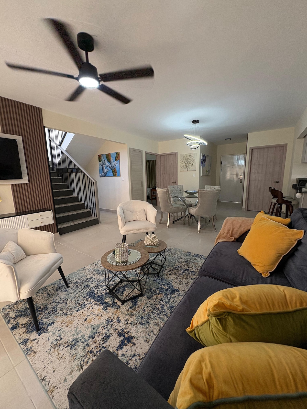Disfruta de lo mejor de Bavaro/Punta Cana desde este centrico Penthouse. Camina por las playas mas bellas, date un chapuzon en la piscina o toma el sol en una terracita privada. Elige entre relajarte muy comodo dentro de nuestro pequeno paraiso o salir por unas copas o una deliciosa cena, con todo cerca. Revisa los aspectos más destacados de nuestro espacio a continuación: *Electrocidad NO INCLUIDA 2 dormitorios /2 baños con ducha Acceso a la playa Piscina Wi-Fi gratis Seguridad 24 horas