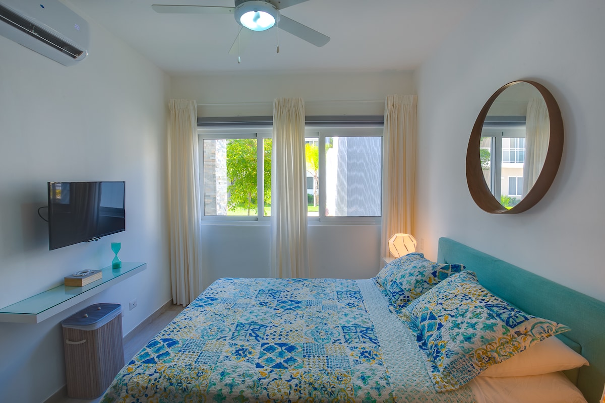 Astonishing bright, modern decorated 2 bedroom apartment , centrally located on the most vibrant areas of Punta Cana/Bavaro , a few step from the Bavaro beach, one of the most beautiful beach . An array of trendy restaurants just 5-minute away. Indulge in delectable local cuisine or sip cocktails while enjoying stunning ocean views. After a day of sun-soaked adventures, retreat to your cozy oasis, and Relax on the balcony with a refreshing drink in hand, or unwind in the living space.