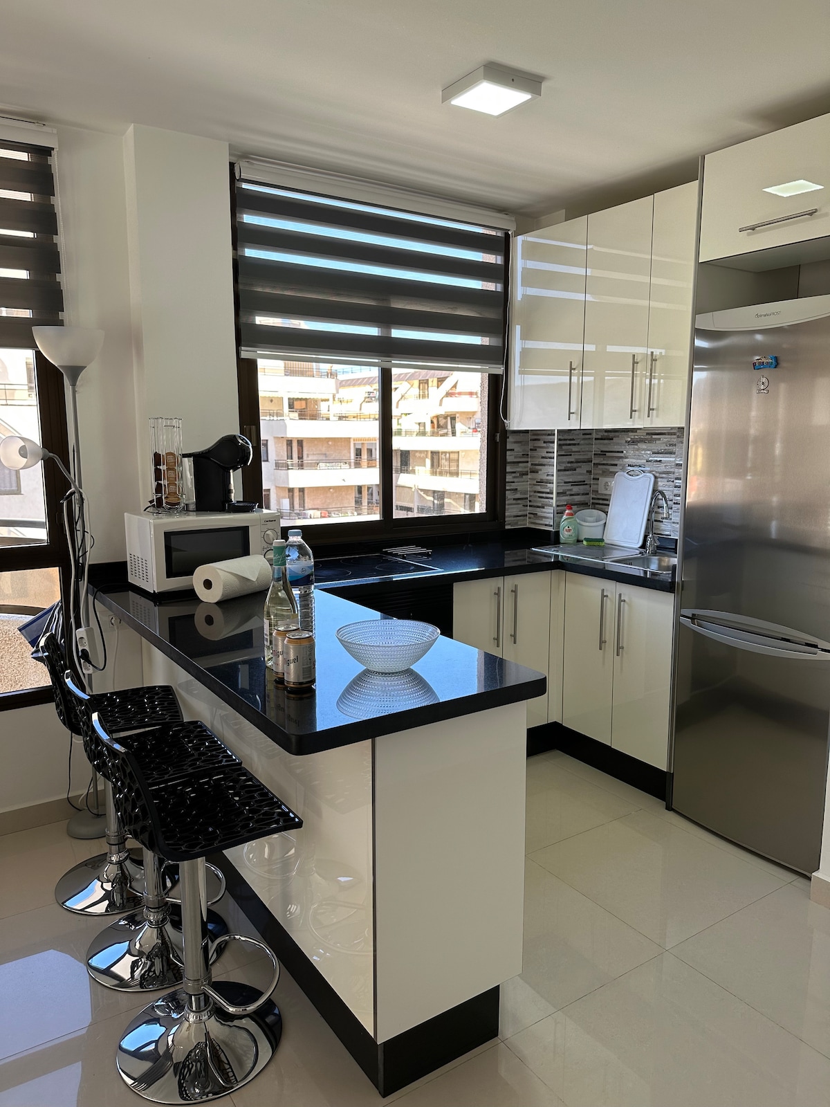 Precioso apartamento, moderno, confortable, luminoso y muy bien equipado . Con piscina comunitaria, Wifi, Smart TV. Muy cerca del centro comercial X Sur, y de los supermercados Mercadona e Hiperdino , a 1 km de los parques acuáticos y a menos de 1 km una de las playas más bonitas de la isla. Con parada de autobus en la Puerta. Puedes gozar del uso del aire acondicionado por un pago extra durante tu estadía!!