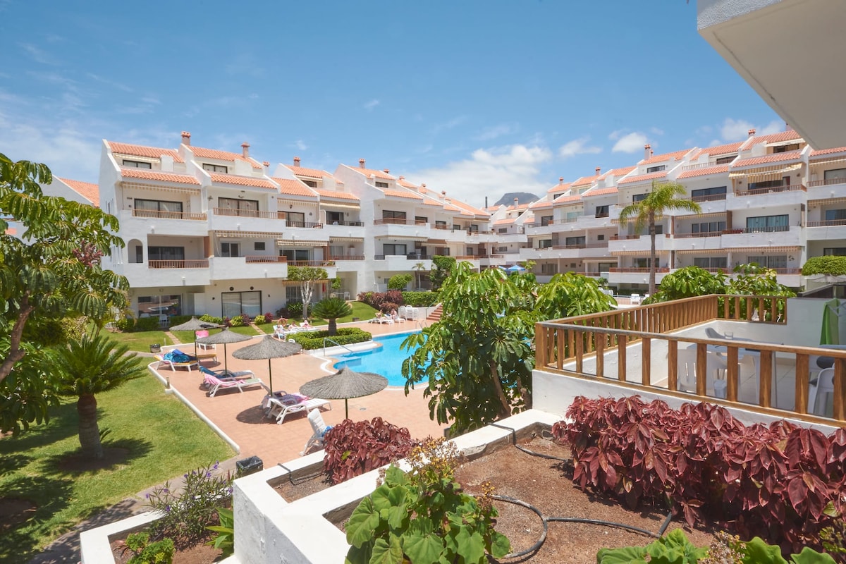 Ask me for special price! Cozy flat with pool view. Located just 3 minutes from the sea. Close to Las Vistas and Los Tarajales beaches. It has a big swimming pool with free sun lounge. Supermarket open daily and pharmacy 50 mtrs. Only 10 minutes from bus stop and 15 km from Tenerife Sur airport. The flat has a living room, equipped kitchen, bathroom, washing machine, bedroom, terrace and Wi-Fi. Nice for two people traveling alone.