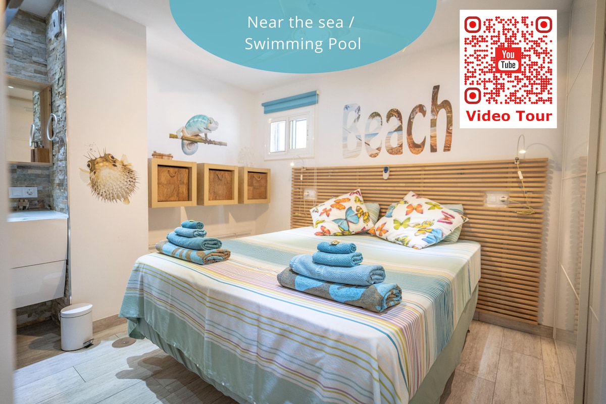 Welcome to CASA DE ARENA, family-friendly holiday home in Los Cristianos, Tenerife! Our sea view apartment is placed directly in the City Center, just 7 min walk from the beach and 15 min drive from the airport. Enjoy a king-size bed, fully equipped kitchen and breathtaking views of the sea and mountains from your private terrace with BBQ. Stay connected with fast Wi-Fi and international channels, enjoy pool access, free parking and 365 days of sun. Book now for an unforgettable stay!