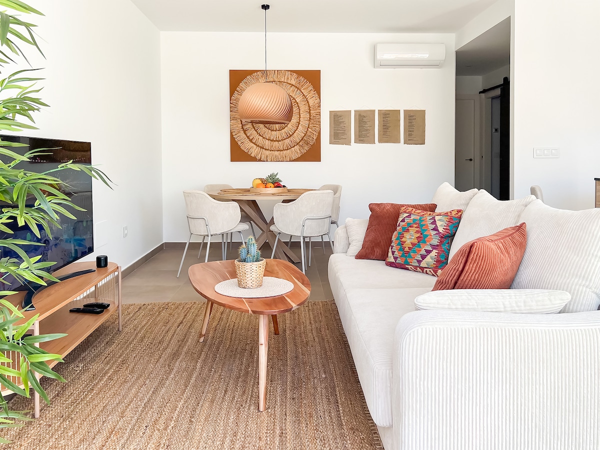 Stylish apartment just steps from Mar Menor lagoon. Renovated with respect for its late-70s charm, combining classic details with modern comfort. Two bedrooms, spacious living room, fully equipped kitchen, bathroom and large hallway. Enjoy morning coffee on the terrace, sandy beaches, sunset walks, local restaurants and the relaxed coastal vibe – perfect for a romantic trip, family holiday or longer stay.