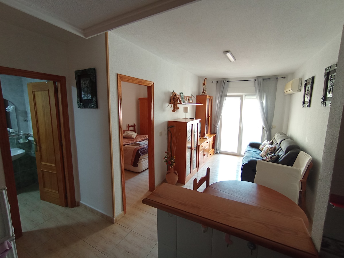 Cozy 1-bedroom apartment in La Manga del Mar Menor. Comfortable and very well-equipped, it is located in a highly sought-after area just a few meters from the pool, the Mar Menor, and the Mediterranean Sea. The area is equipped with all services.<br><br>Being on the first line, it features a beautiful terrace with views of the Mediterranean Sea. It is furnished with two single beds (90 cm each) and a sofa bed (1.50 m).