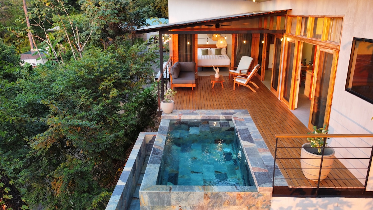 Casa La Julia is a cozy entire home facing both the ocean and surrounding jungle. Built with warm wood accents and filled with natural light, it features an open kitchen and bedrooms that connect directly to the wooden deck, creating a seamless indoor-outdoor flow. Take in the view from the private pool as the sky turns golden. Tucked into a quiet, elevated setting, the home offers privacy and a calm atmosphere, just a short 4-minute drive from the beach and Santa Teresa town.