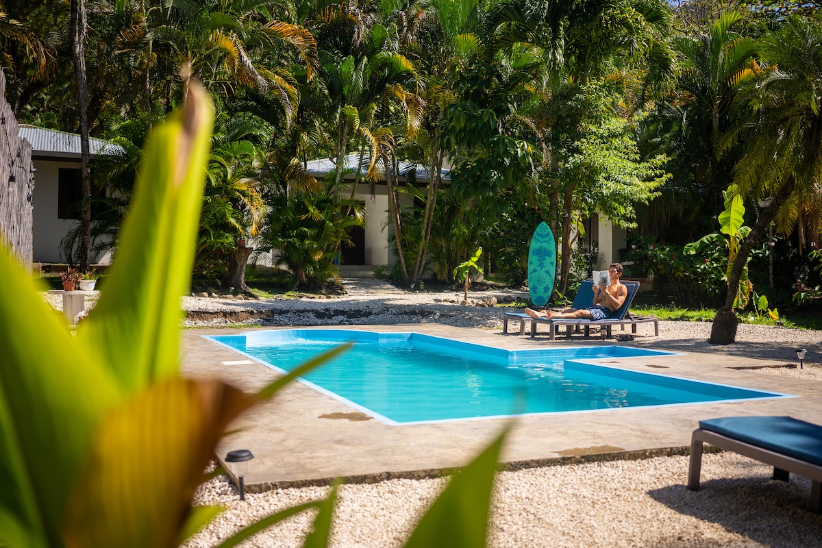 Relax in this upscale private villa with your own pool, 3-minute walk to the beach—Located on the Nicoya Peninsula in the Blue Zone at Tambor beach in a gated community with security 24/7 with a beautiful 9 hole golf course. Bright open concept with 3 beds & 2.5 baths. Charcoal BBQ. In the community: Grocery store, restaurant, live music & a cafe. Air conditioned. 100 Mbps high speed internet. Free parking. Pet friendly. Maximum 9 people. No parties allowed and no noise.