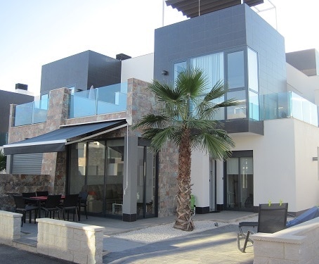 Nyere feriehus i moderne og koselig stil. Ett fullt møblert hjem med fokus på gode senger,dyner,uteområder,møbler og klimaanlegg på alle rom. Det er takparasoll på takterrassen samt parasoll utenfor stuen. Basseng ligger 10 meter fra vår eiendom Huset ligger i et stille og avskjermet boligområde som er barnevennlig. Det er kun eiere av boligene som kommer seg inn med bilen i området. Det er en port på utsiden. Barnevennlig. Kort vei til badestrender, matbutikker, restauranter, golfbaner, etc.